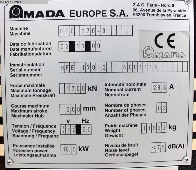 | Fabrikat | AMADA |